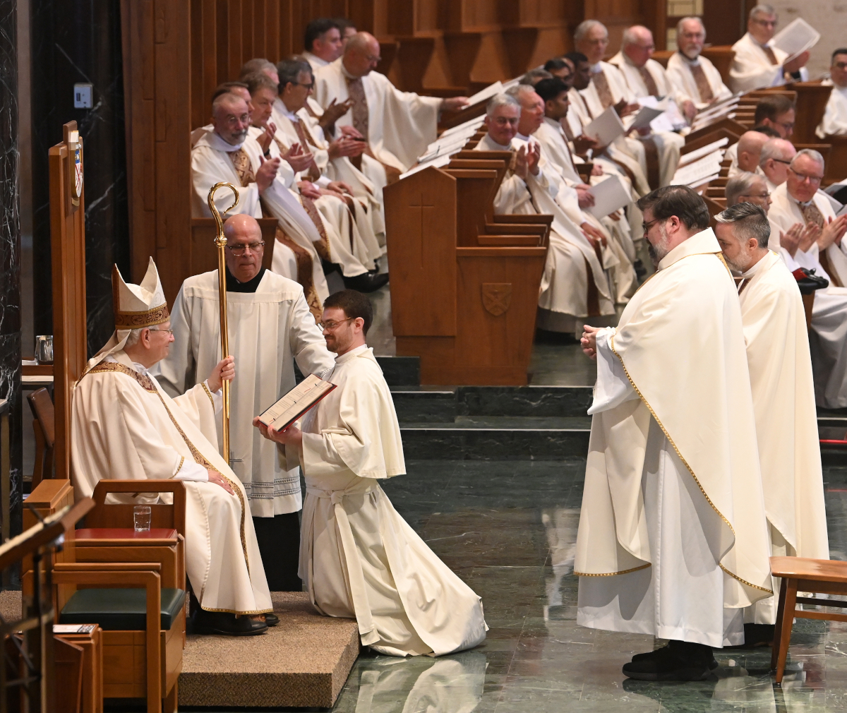 Zaterdag 18 april 2026 was Frank van Roermund o.praem., overste van de Abdij van Berne, aanwezig bij de abtszegening van Bradley R. Vanden Branden o.praem. (foto boven: 2e van links), de recent gekozen nieuwe abt van de dochterabdij St. Norbert Abbey in De Pere, Wisconsin, USA.