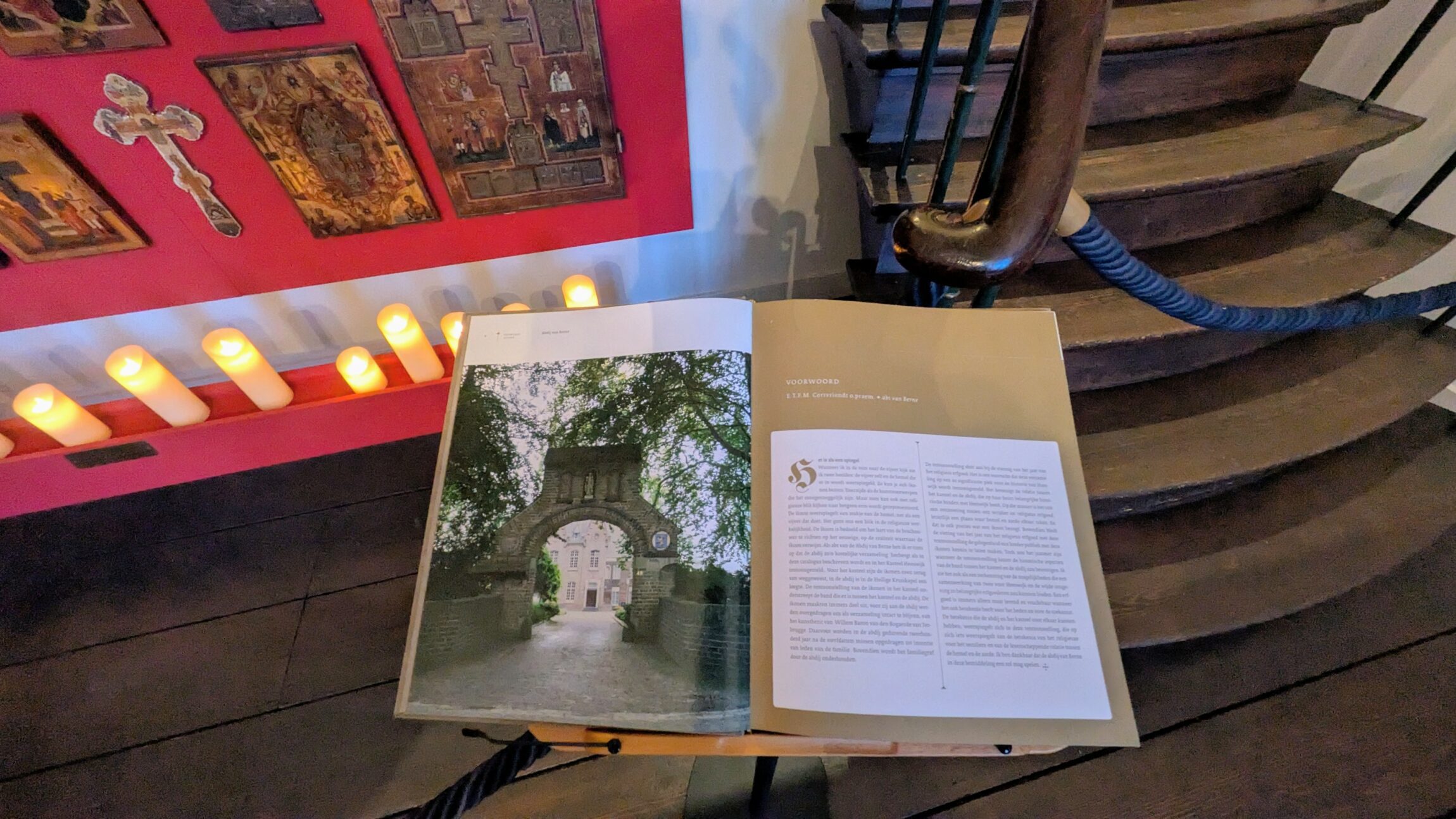 De dag begon met een inspirerende mis. Deze werd opgeluisterd door een bemoedigende preek van Frank en stemmige gregoriaanse gezangen en samenzang. De gezamenlijke lunch met soep en broodjes was gemoedelijk, gezellig en lekker. ’s Middags ging iedereen naar Kasteel Heeswijk voor een mooie lezing van de archivaris en bewondering van de iconen. Deze iconen hebben een lange periode gehangen in de Abdij van Berne, en hebben in het kasteel nu een plekje hebben gekregen naast de bibliotheek van de baron.